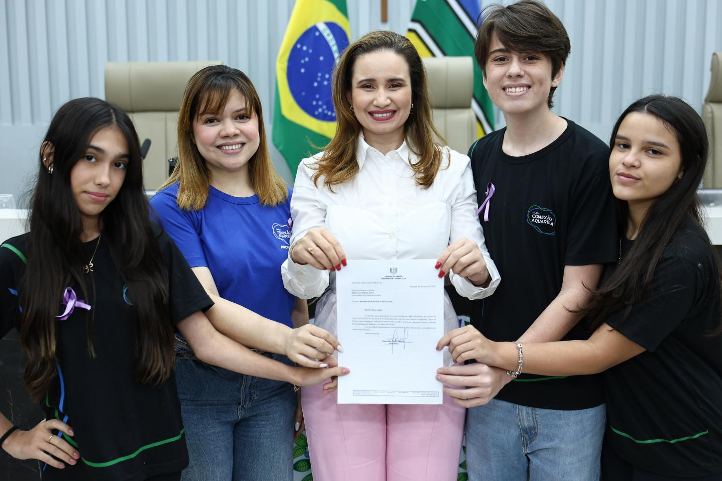 A votação do projeto foi acompanhada em plenário pela professora de Língua Portuguesa Gerlândia Chagas e pelos alunos Paulo Serrão, Alice Castellões e Giovana Andrade, da Escola Conexão Aquarela, idealizadores da proposição.