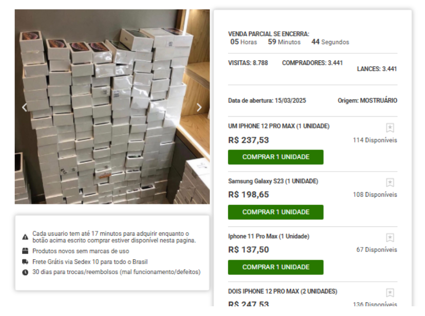 Trata-se de um golpe. A página imita o visual do portal G1 para divulgar uma matéria fictícia sobre um suposto leilão da Amazon. A Amazon já esclareceu que não realiza leilões de produtos para consumidores. O G1 também confirmou que jamais publicou essa reportagem.