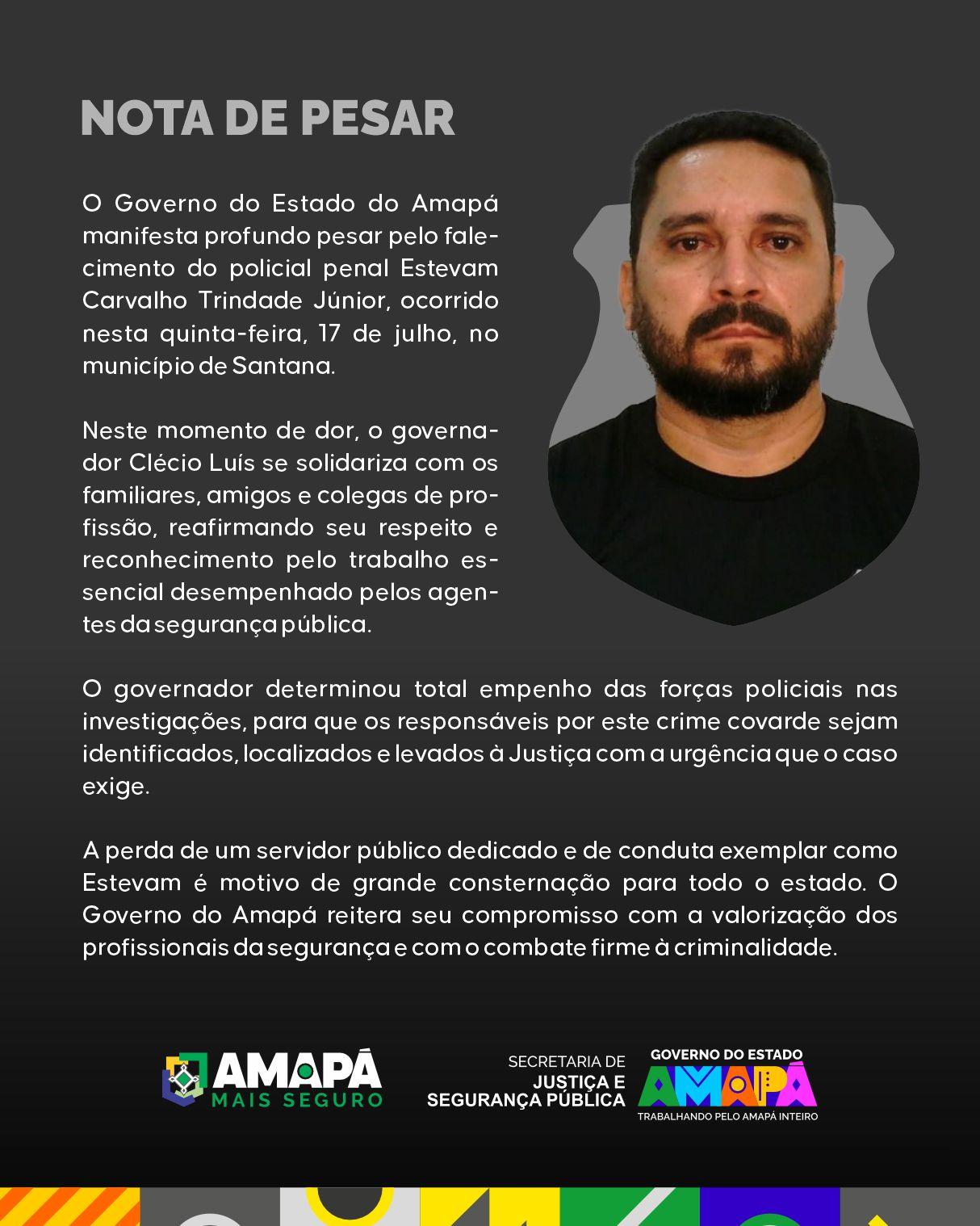 As forças de segurança do Amapá continuam em uma intensa operação para localizar e prender o assassino do policial penal Estevam Carvalho Trindade, de 50 anos, executado a tiros na manhã desta quinta-feira (17), na Avenida Juscelino Kubitschek, bairro Paraíso, em Santana. O crime, que chocou a cidade, teve características de execução, mas a motivação permanece desconhecida até o momento.