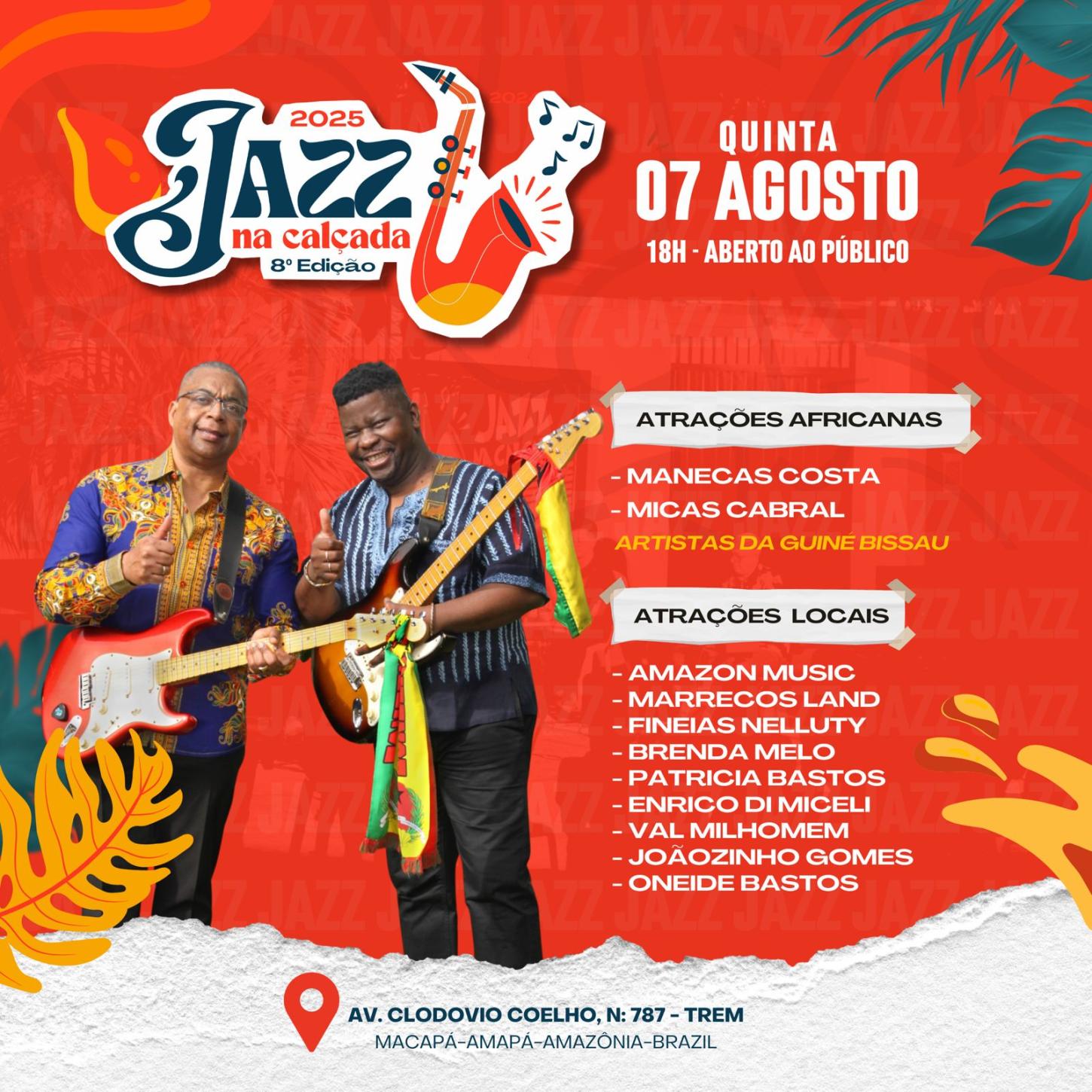 A 8ª temporada do Jazz na Calçada começa na próxima semana e promete uma abertura marcada pelo intercâmbio cultural entre músicos do Amapá e da Guiné-Bissau. A estreia acontece no dia 7 de agosto, a partir das 18h, na Calçada Mestre Tiago, localizada no bairro do Trem, em Macapá.