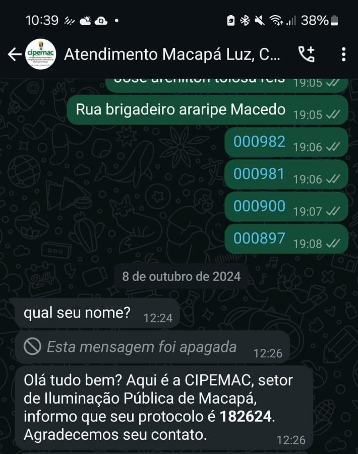 Os moradores do final da rua Brigadeiro Araripe Macedo, no Infraero I, em Macapá, vivem há oito meses em meio à escuridão. Eles relatam que desde agosto do ano passado fazem reclamações à Companhia de Iluminação Pública, Energia Sustentável e Saneamento do Município de Macapá (Cipemac), mas não obtêm resposta.