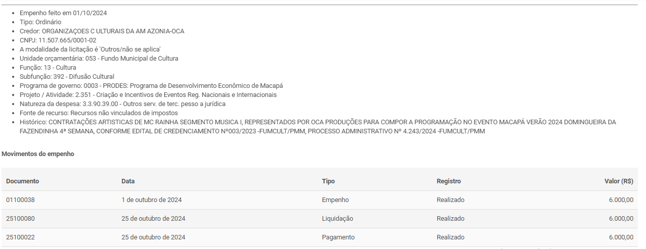Numa rápida análise ao Portal da Transparência da Prefeitura de Macapá é possível identificar a desvalorização por parte do prefeito Antônio Furlan com os artistas locais.