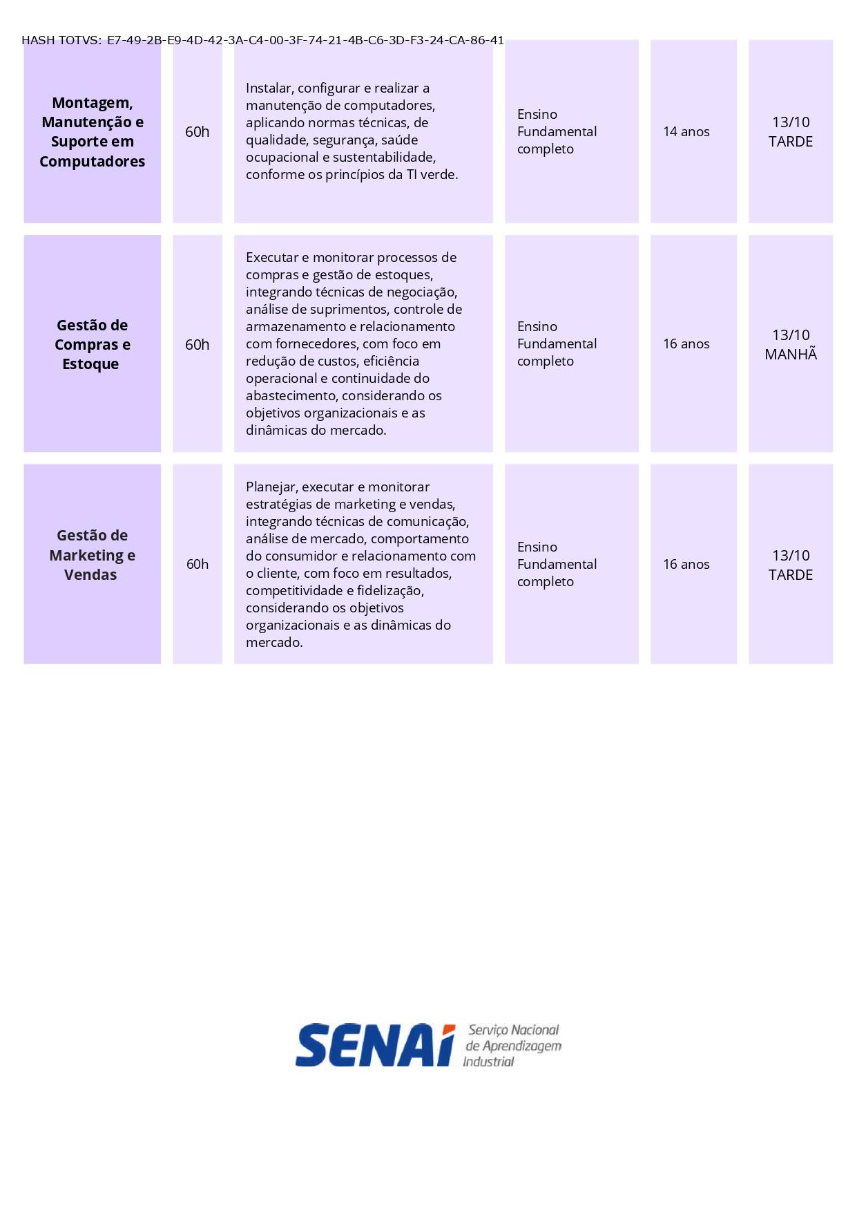 Ao todo, são oito cursos gratuitos de 60h cada, voltados para áreas técnicas e administrativas: